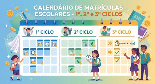 Informa-se que a primeira fase de matrículas já se iniciou para o pré-escolar e o 1º ano do ensino básico. Conheça as datas para as matrículas escolares para o ano letivo 2026 / 2027 .